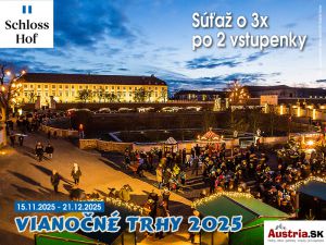Len kúsok od Bratislavy, v srdci barokového zámku Schloss Hof, sa počas víkendov od polovice novembra rozžiari čarovný vianočný areál plný svetiel, hudby, tradícií a sviatočných vôní. Je to ideálne miesto, kde si môžete vychutnať predvianočnú pohodu so všetkým, čo k nej neodmysliteľne patrí. Čítajte viac ...